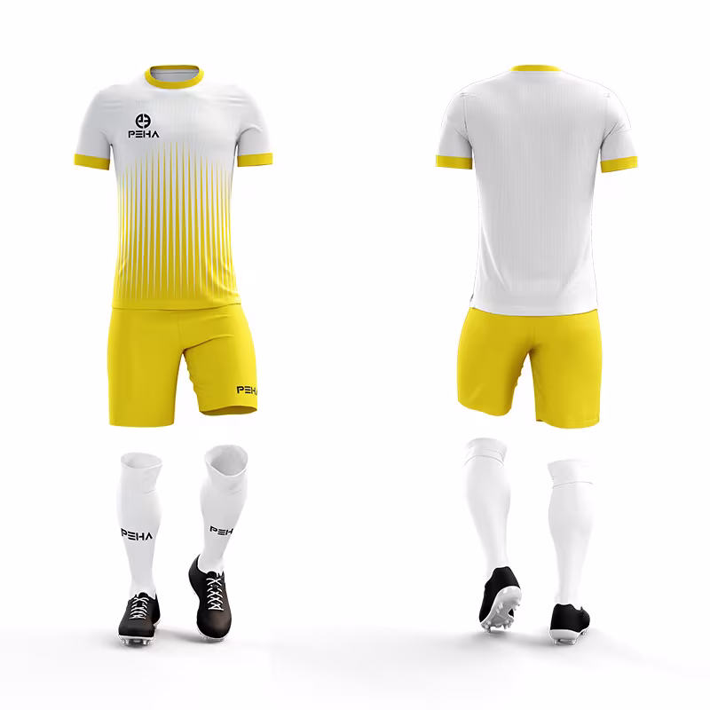 Stroje piłkarskie PEHA Torres to najwyższej jakości, sublimowane komplety piłkarskie dostępne w promocyjnej cenie. Stworzone dla klubów, które oczekują profesjonalnych rozwiązań bez nadmiernego obciążenia budżetu. Komplety szyjemy z funkcjonalnej dzianiny sportowej 100% poliester Coolmax, która zapewnia doskonałą oddychalność, skuteczne odprowadzanie potu z powierzchni ciała oraz efektywną wentylację. Dzięki temu organizm zawodnika nie przegrzewa się nawet podczas najbardziej intensywnego meczu, a komfort gry pozostaje na najwyższym poziomie. Dodatkowo materiał wyróżnia się lekkością, przyjemnością w dotyku oraz wysoką wytrzymałością. Stroje zachowują swój kształt i właściwości użytkowe przez długi czas, co czyni je inwestycją opłacalną w dłuższej perspektywie.