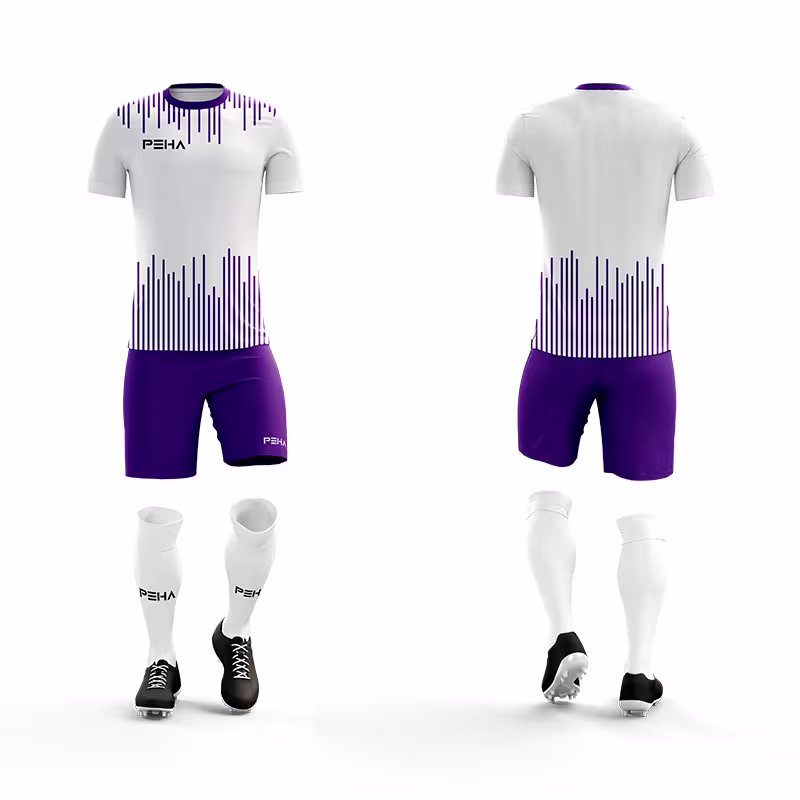 Najwyższej jakości, sublimowane stroje piłkarskie PEHA Arco dla dzieci oferujemy w niezwykle atrakcyjnej cenie łączącej profesjonalne wykonanie z wyjątkową opłacalnością dla klubów i szkółek piłkarskich. Komplety piłkarskie PEHA produkujemy z funkcjonalnego 100% poliestru Coolmax o właściwościach oddychających. Materiał skutecznie odprowadza pot i wilgoć z powierzchni ciała oraz zapewnia optymalną wentylację, ograniczając ryzyko przegrzania organizmu podczas intensywnego wysiłku. Dodatkowo dzianina sportowa Coolmax jest przy tym lekka, przyjemna w dotyku i wysoce wytrzymała, co przekłada się na komfort użytkowania i długą żywotność stroju. Do produkcji strojów wykorzystujemy zaawansowaną technikę sublimacji. Dzięki niej nadruki są trwałe i praktycznie niezniszczalne – nie spierają się, nie odklejają i nie blakną, ponieważ zostają wtopione w strukturę materiału. Technologia sublimacji umożliwia również stworzenie oryginalnej, ponadczasowej szaty graficznej, która przykuwa uwagę drużyny przeciwnej i kibiców, podkreślając charakter i profesjonalizm zespołu.